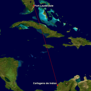 Flying from Florida to Cartagena is not complicated. It is about 1,000 nautical miles on a straight line from Palm Beach or Fort Lauderdale. The dominant wind will give you a push, and it’s a pretty straight flight over Cuba (an overfly permit is required), then overflying Jamaica. If need be, refueling can be organized in Kingston at a very, very attractive price and with a very fast turnaround.