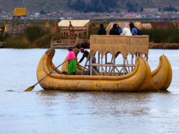 The group of about 40 floating islands, known as Uros, are made of floating reeds that abound in the shallows of the lake. It is amazing when you walk on them and visit the locals to think that you are on a floating island, and that floating island can sink –– and does after a little while.