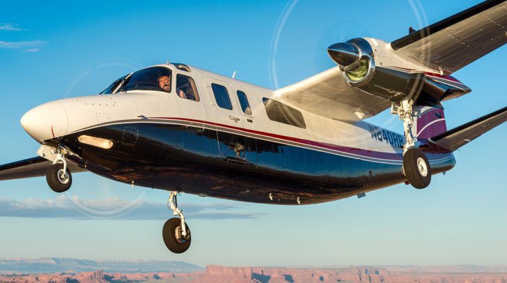 The Honeywell engines that power all turboprop Twin Commanders are noted for their excellent performance and fuel efficiency. One other advantageous consequence of the direct-drive engine design compared to free turbines is the rapid response of engine and propeller rpm to changes in power lever position. If you’re descending a bit too rapidly on a non-precision approach, skootch the levers ahead slightly to increase power and slow the descent rate. (Condition levers have already been set to HI RPM, as called for in the Before Landing checklist.) You’ll see the results almost immediately. Same for increasing descent rate—retard the levers a tad to wipe off a bit of power, and the IVSI tells the tale right away. No final-approach, pucker-inducing delay in power and descent-rate response from Honeywell engines.