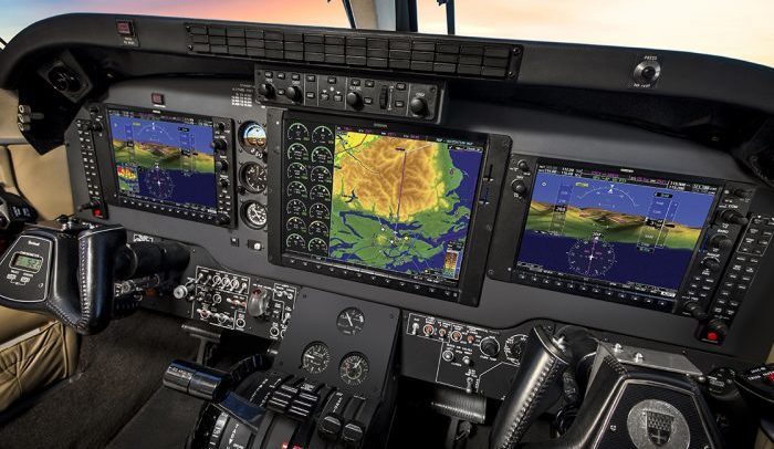 Schematic of a glass cockpit, the G1000, with AHRS, ADC, and magnetometer.